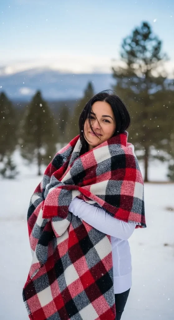If you’re stepping outside, this is perfect. Wrap a large scarf over a simple top and jeans. It keeps you warm without needing a full coat. Try DIYing your scarf from leftover flannel fabric for a personal touch.
