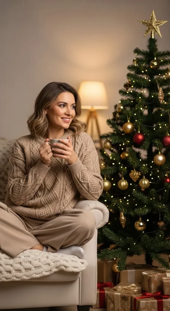 Christmas Day is all about warmth, comfort, and celebrating in style. Whether you’re spending it by the fire, cooking with family, or lounging after lunch, the right outfit makes all the difference. Here are 24 Christmas Day outfit ideas that help you relax while looking great — from cozy layers to sparkly touches that still feel effortless.