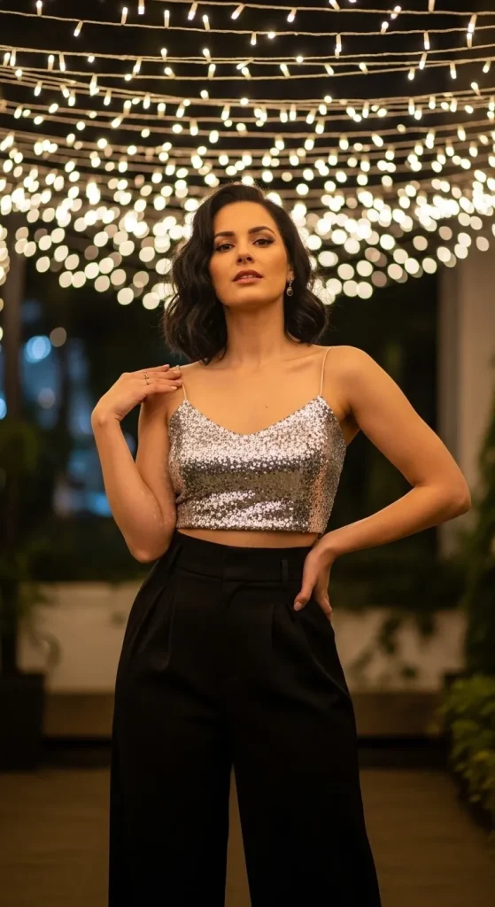 16. Black Wide-Leg Pants and Sequin Top