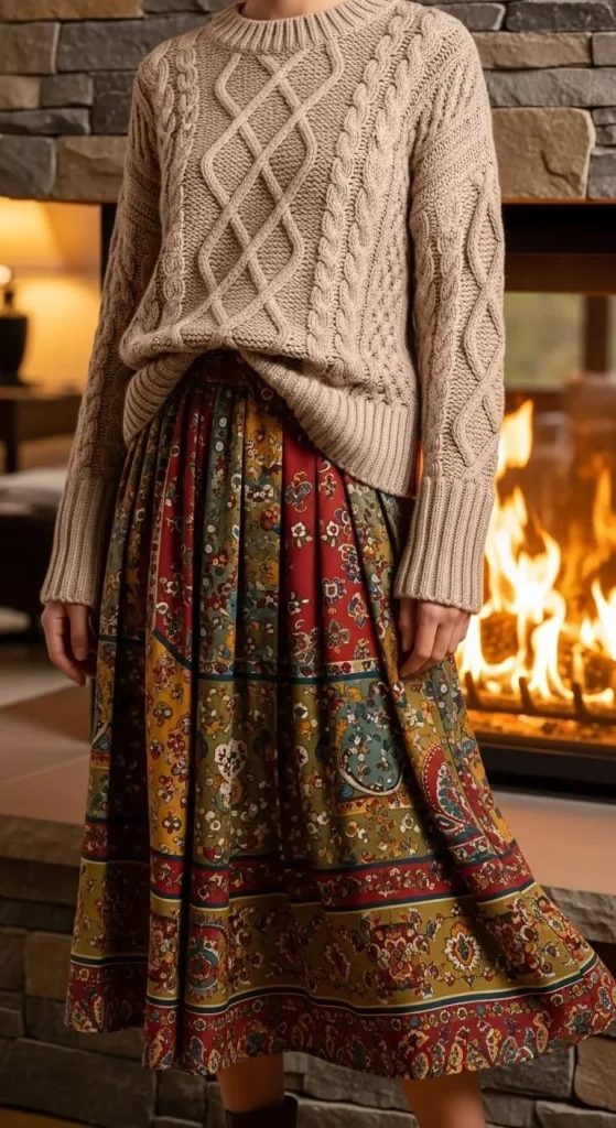 17. Cable Knit Sweater and Midi Skirt