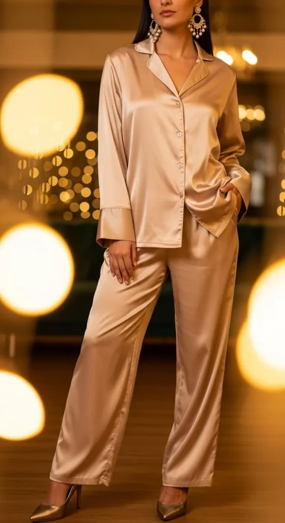 Pajama-style sets are trending for their comfort and charm. Add heels and accessories to make them dinner-ready. Stick to silky fabrics and light colours for a polished finish.