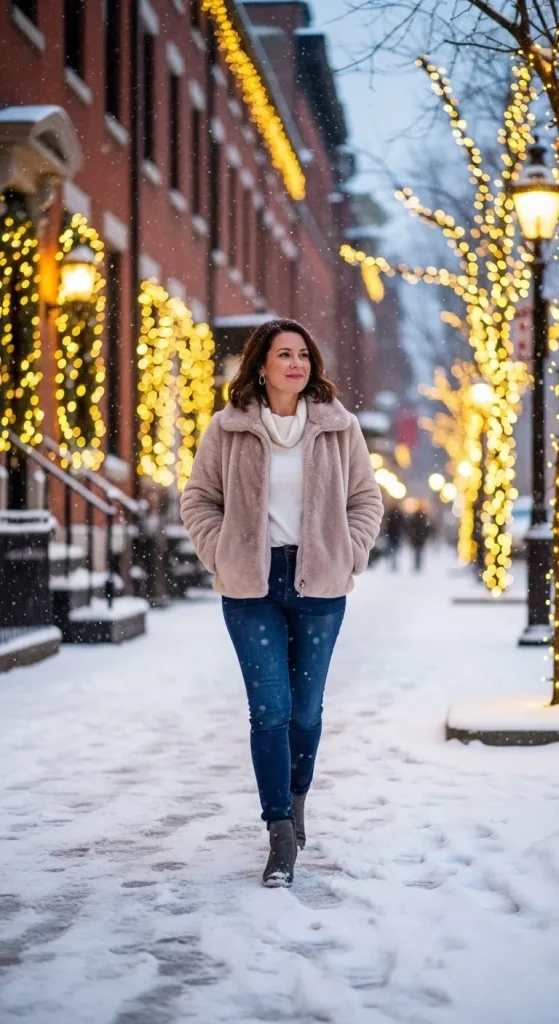 Faux fur adds instant glam. Go for neutral tones like beige, white, or blush for versatility. Pair with skinny jeans and ankle boots. You can often find faux fur pieces in thrift stores or clearance racks after New Year’s.
