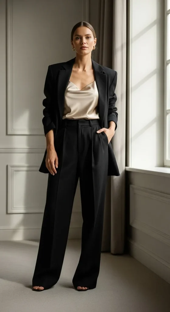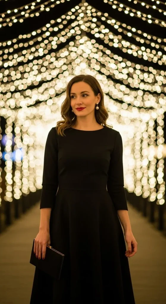 The little black dress never fails. Go for minimal accessories and let red lipstick do the work. Add tights and low heels if it’s chilly. Even a basic black dress can look expensive when styled right—think sleek hair and confident posture.