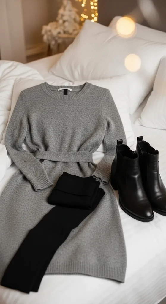 A knit dress is an easy one-piece outfit that feels warm and soft. Add tights and ankle boots for a balanced, practical look. Choose a relaxed fit so you can move comfortably at the event. If you want variety, add a belt for shape or style it with a long necklace you already own. A soft scarf adds colour without making the outfit heavy.