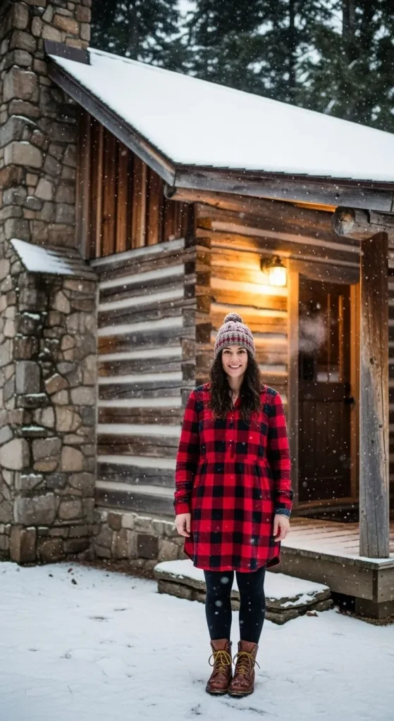 Nothing says festive like plaid. A plaid flannel dress with black tights feels both cozy and classic. Add ankle boots and a chunky belt for shape. If you don’t have a flannel dress, try layering a long shirt over a slip dress. Thrift stores often have great options for under $10. Throw on a cardigan and you’re ready for cocoa nights or casual dinners.
