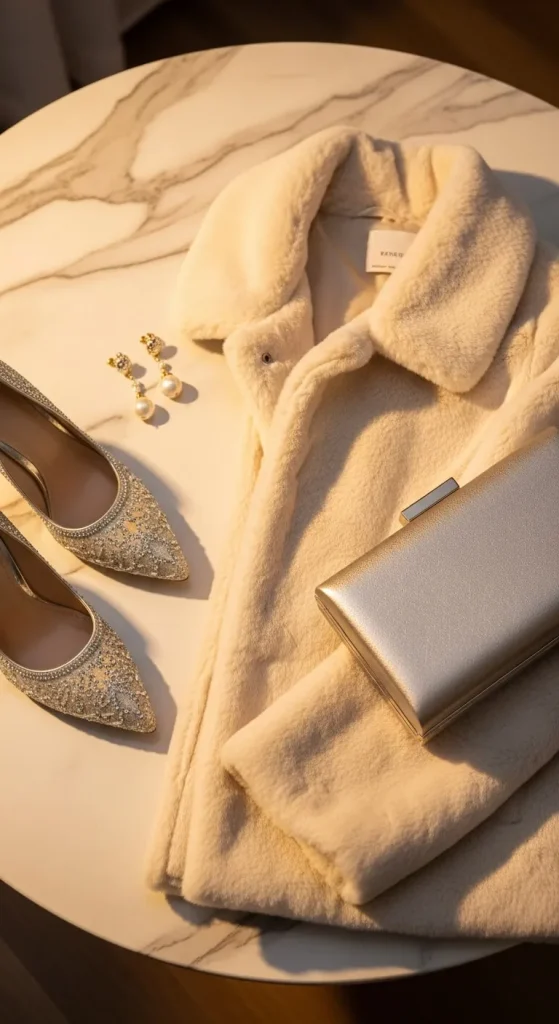 A faux-fur coat makes any outfit look ready for the holidays. Wear it over a monochrome outfit so the texture stands out. You can find budget-friendly faux-fur pieces at thrift stores or seasonal sales. Keep accessories light and shoes simple. If your old coat looks flat, comb it gently with a wide-tooth brush to revive the fluff.
