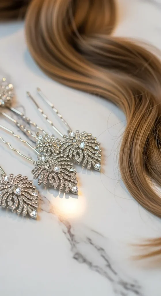 Crystal clips, pins, and headbands add shine to simple hairstyles. You can style loose curls or a sleek bun. If you want a DIY version, glue small rhinestones onto plain clips you already own. These accessories work well with dresses, jumpsuits, or knit sets. Keep other jewelry light so everything stays balanced.