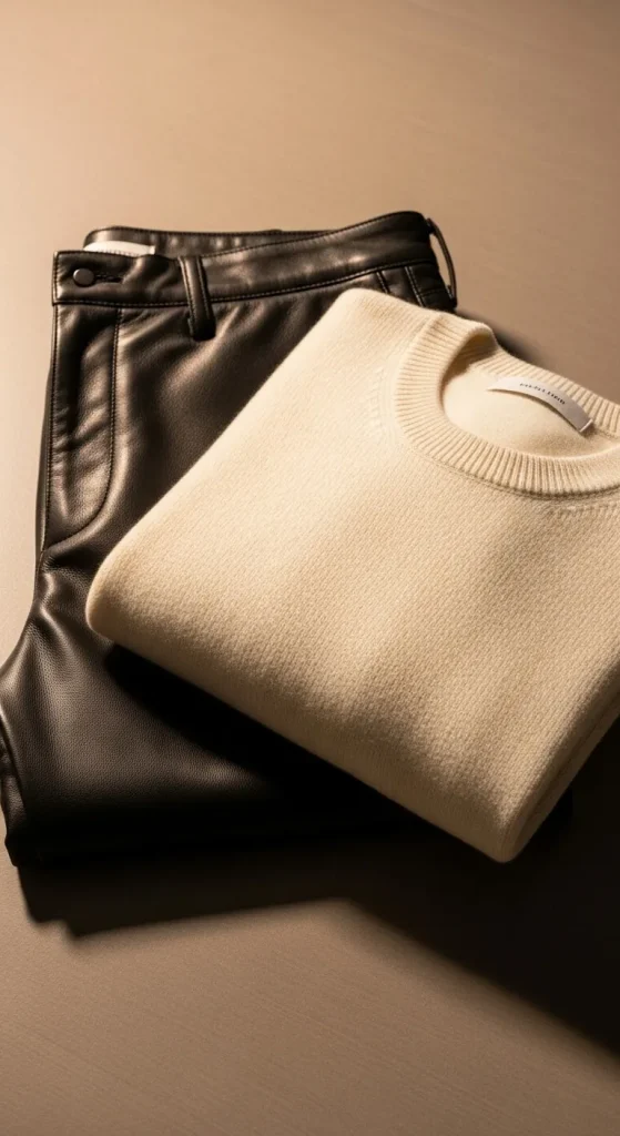 11. Leather Pants and Soft Sweaters