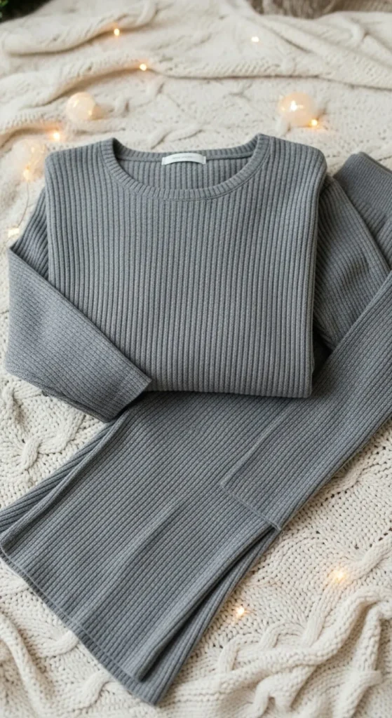 Knit sets feel comfy while still looking ready for gatherings. Choose ribbed textures or soft cashmere-blend alternatives. You don’t need exact matches—any similar shades work well. Add a belt or long necklace for shape. For DIY, sew matching buttons on the top and pants to tie them together visually. White sneakers or heeled boots both fit nicely with this style.
