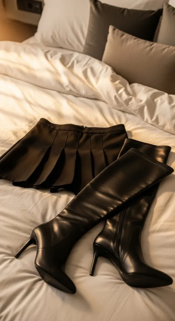 Mini skirts look great with tall boots, especially in colder weather. Use knit, leather, or tweed skirts for texture. Add a fitted top or a tucked-in sweater. If you want to save money, shorten an older skirt at home for a new shape. Tall boots make the outfit feel ready for parties without too much effort.