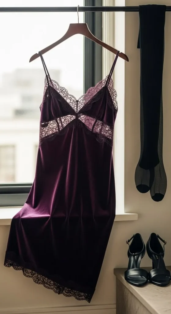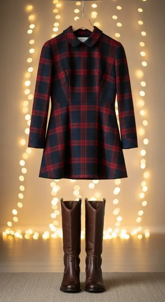 A velvet dress always works for holiday nights because it catches light in a soft way. You don’t need a designer piece—thrift stores carry plenty of velvet options. Add sheer tights for contrast. Layer a long coat if the weather is cold. For a simple DIY touch, add a thin satin ribbon around the waist for a pretty finish. Stick to small earrings so the dress stands out.