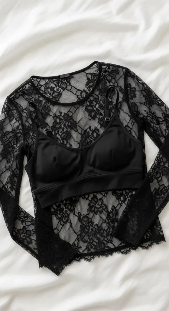 Sheer tops feel festive without looking too bold. Wear them over a black, nude, or sparkly bralette. Add high-waisted trousers or skirts for shape. Look for mesh or organza fabric if you want to sew a simple top yourself. A light jacket or blazer adds warmth while keeping the outfit stylish.