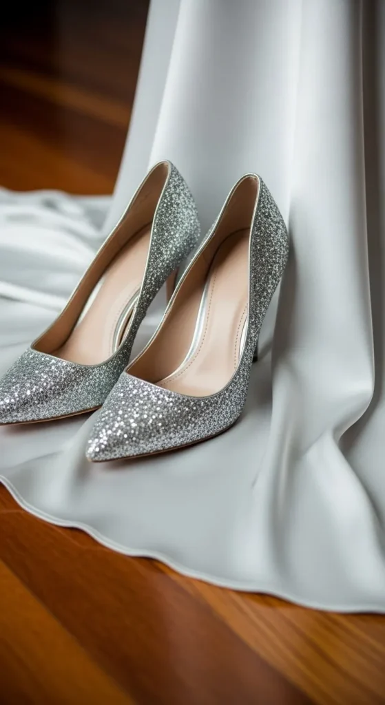 If you want sparkle without heavy outfits, choose glittery shoes. Keep your dress plain and let the shoes stand out. You can DIY sparkle shoes by using fabric glue and fine glitter on an old pair. Add a small clutch and minimal earrings. This trick works well for last-minute holiday invites.