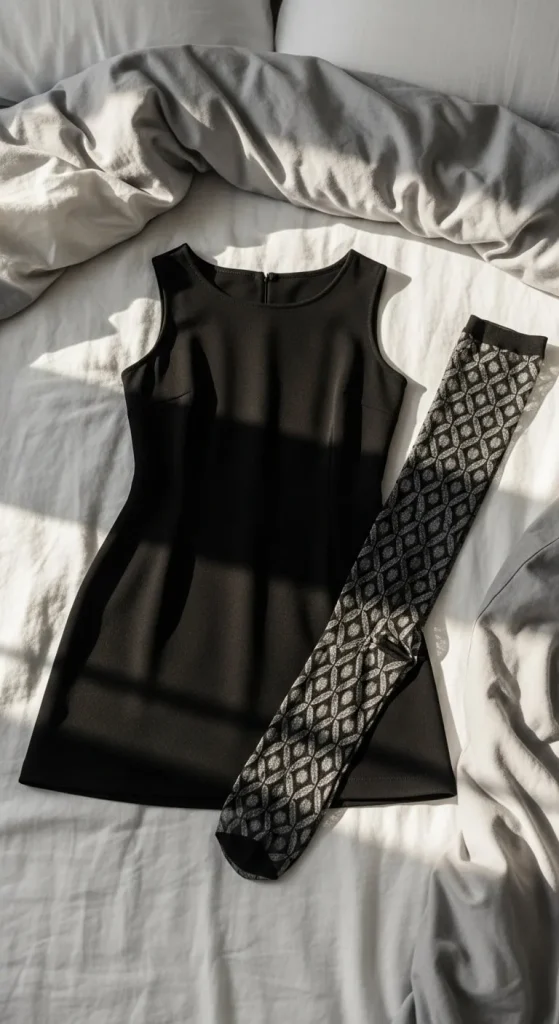 Patterned tights turn a simple mini dress into a fun outfit for a night out. Choose dots, shimmer, or subtle lace. The dress can stay basic—use something you already have. Keep shoes sleek. For DIY, cut shapes from fabric paint stencils and lightly stamp a pattern onto sheer tights. It gives a custom look on a tiny budget.