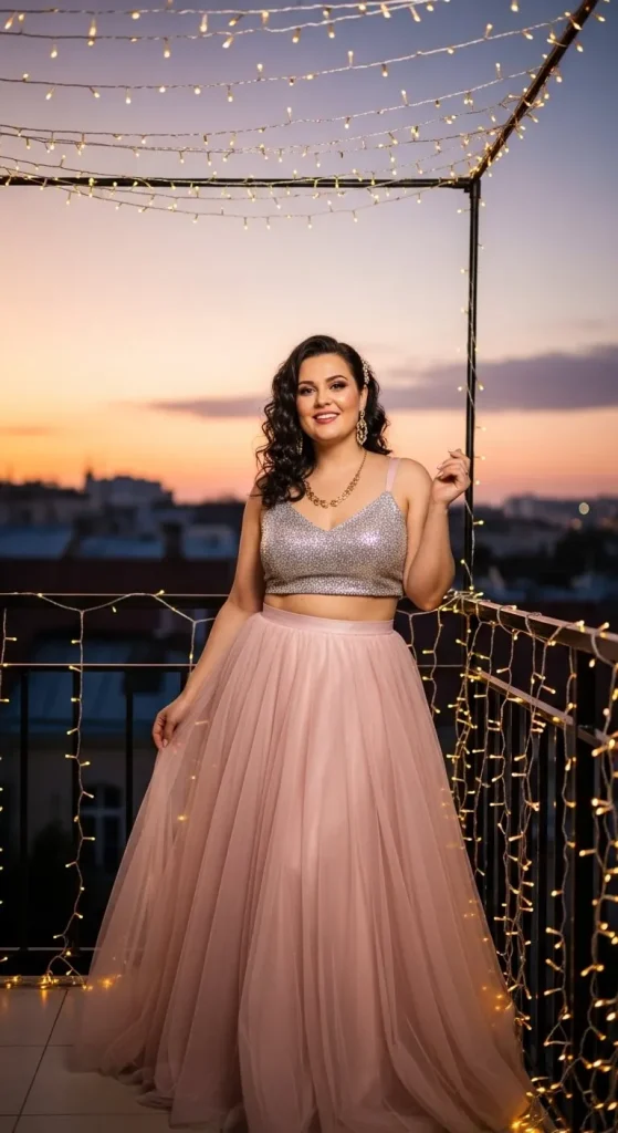 Tulle adds drama in the best way. Choose soft pastels or metallic hues. Pair with a short top or tucked-in blouse. Add a belt for shape and nude heels to elongate your legs. You can even DIY a tulle skirt with elastic waistband and tulle fabric from a craft store.