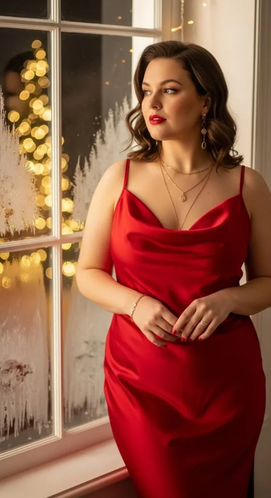 Nothing says holiday like red satin. A slip dress hugs curves gracefully and can be styled up or down. Add a cropped faux fur jacket and gold heels for a polished look. Want a more affordable option? Layer a satin cami over a black turtleneck and pair with a midi skirt.
