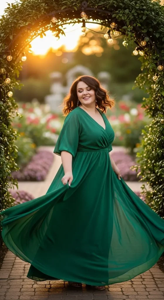 An emerald green maxi feels festive and flattering. Look for wrap or empire cuts that highlight your shape. Pair with gold accessories and nude heels. You can even add a sparkly belt for definition. If buying new isn’t an option, rent a maxi from a local dress rental boutique for one-night glam.
