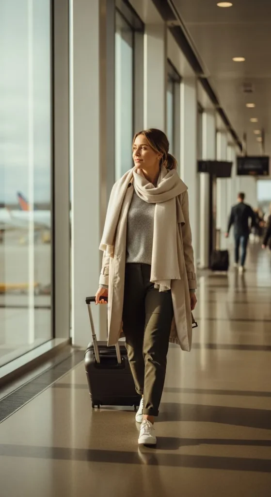 A big scarf is your best travel companion. It doubles as a blanket, shawl, or pillow. Choose a neutral plaid or solid wool blend. You can wear it over a trench or drape it casually. Pro tip: buy from local markets instead of airports for better prices and quality.