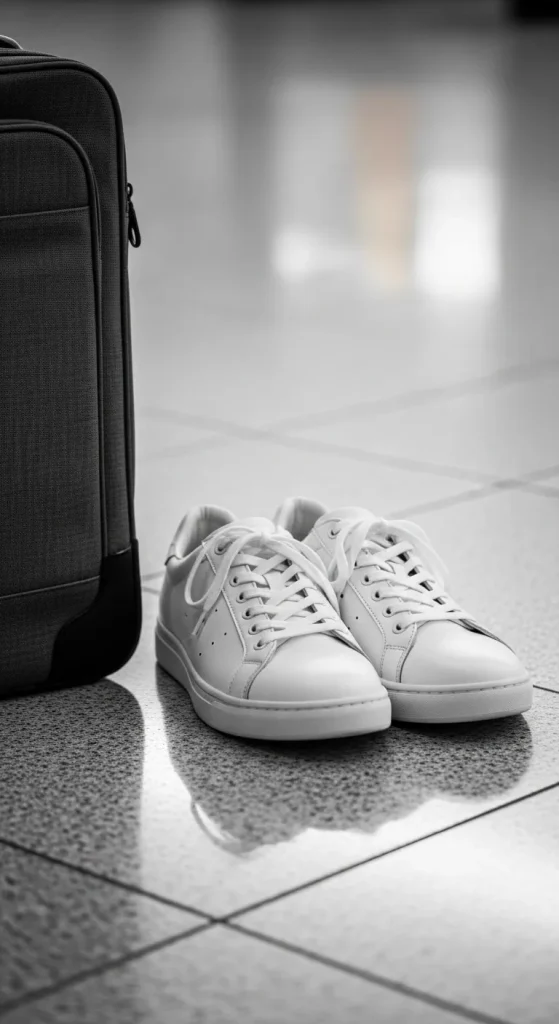 Good sneakers are essential. Choose ones with cushioning and easy slip-on design. White or beige sneakers go with everything. Keep them clean using baby wipes or a damp cloth. To save space, wear them while travelling. Affordable canvas options look just as good as designer pairs.