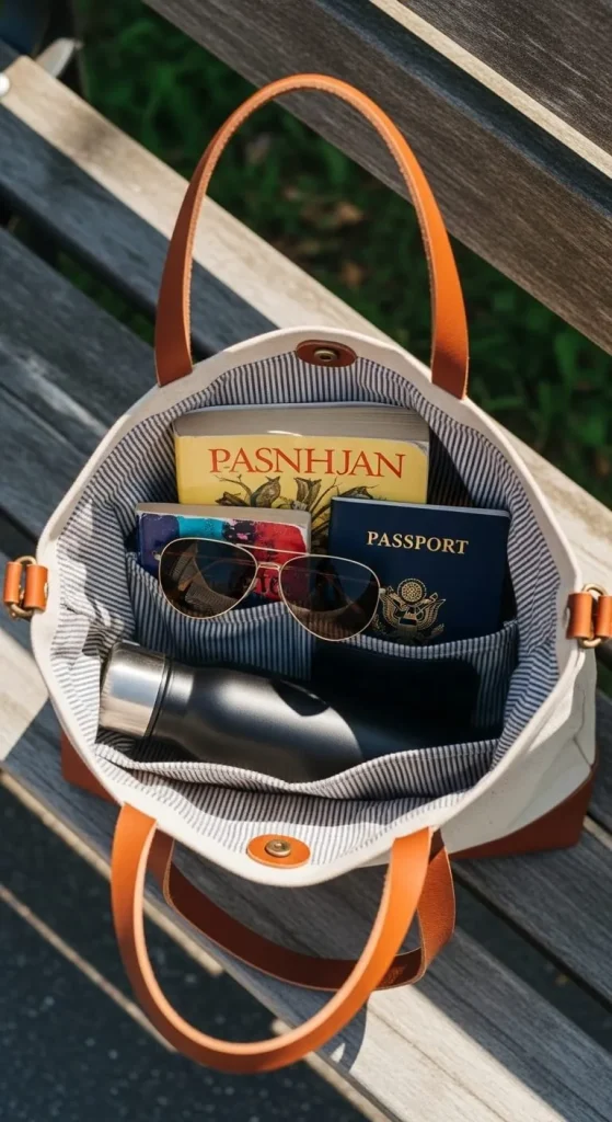 A large tote keeps everything in reach. Look for one with a zip closure and sturdy straps. Canvas and nylon are light and affordable. Keep travel-size toiletries in a pouch inside. A simple trick: use your tote as your “personal item” to carry extra without extra fees.