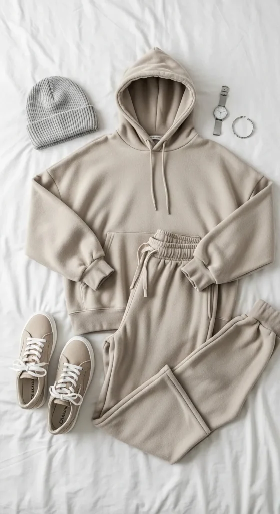 A two-piece knit or lounge set is perfect for travel days. It looks coordinated but feels as relaxed as pyjamas. Pick stretchy fabrics that move with you and don’t wrinkle. Choose earthy or neutral colours for a put-together feel. To style it up, throw on a trench coat or a denim jacket. Affordable sets are easy to find online — pair them with white sneakers for that clean, minimalist vibe.