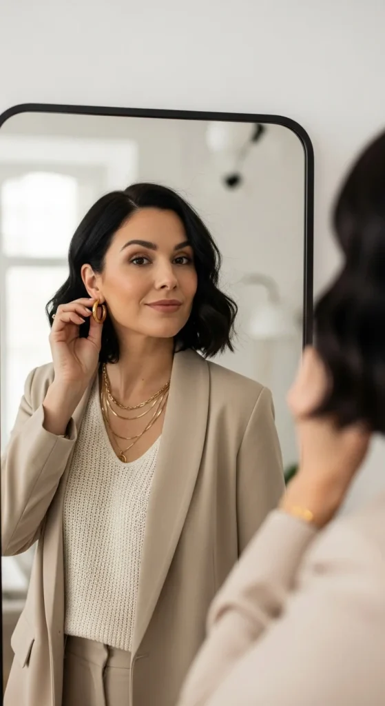 If you’re wearing statement earrings, skip the heavy necklace. If your outfit already has strong textures (like sequins or embroidery), tone down the jewelry. Aim for one focal point per outfit so your glow-up feels effortless, not overdone.