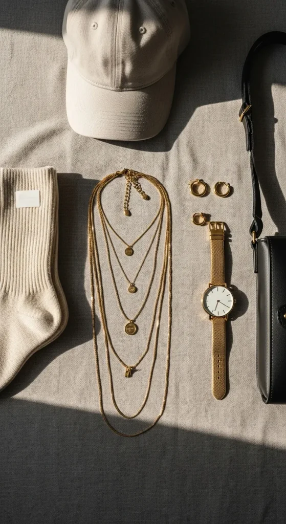 Keeping accessories cohesive (gold with gold, silver with silver) makes your look intentional and polished.