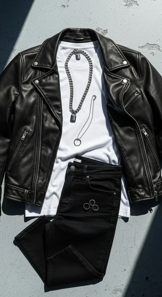 Edgy outfits shine when they combine different materials. This keeps your outfit visually interesting without adding fuss.