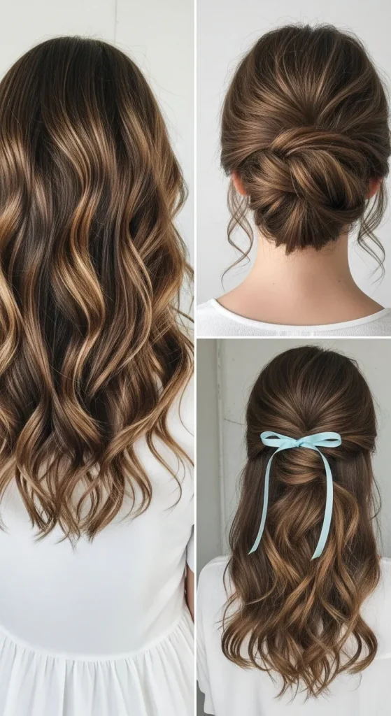 - Half-up with a ribbon