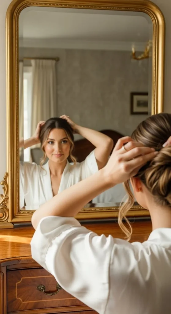 - Keep your hair in a simple everyday style—low bun, ponytail, or loose waves.