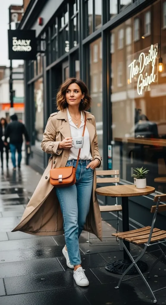 - Finish with a structured outer layer (coat, trench, or blazer).