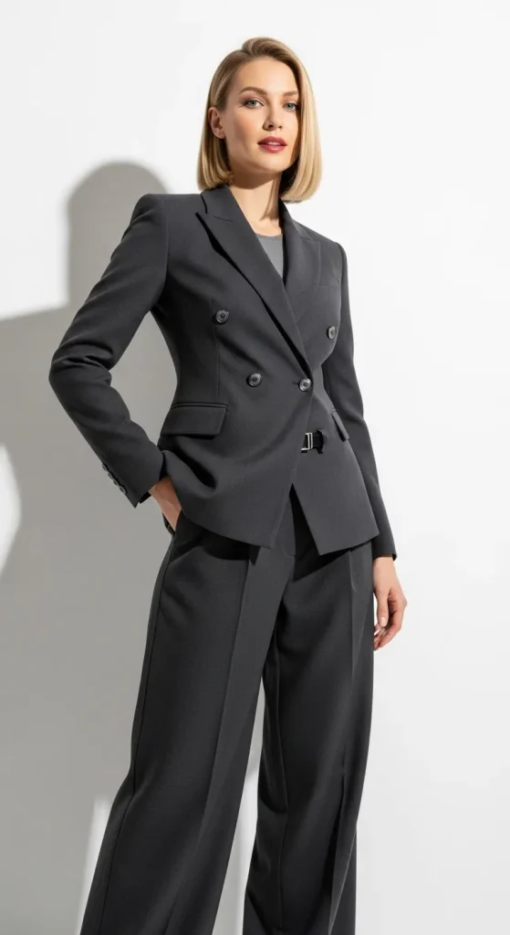 - Try a well-fitted blazer or jacket that nips at the waist to create a structured look.