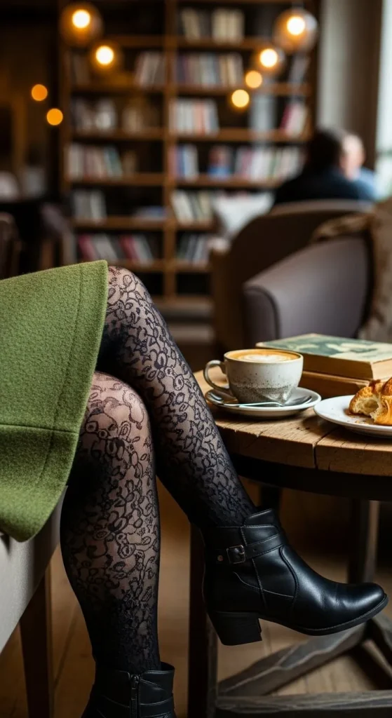 • Tights or socks: Add texture and warmth — patterned tights or chunky socks peeking over boots look cute and cozy.
