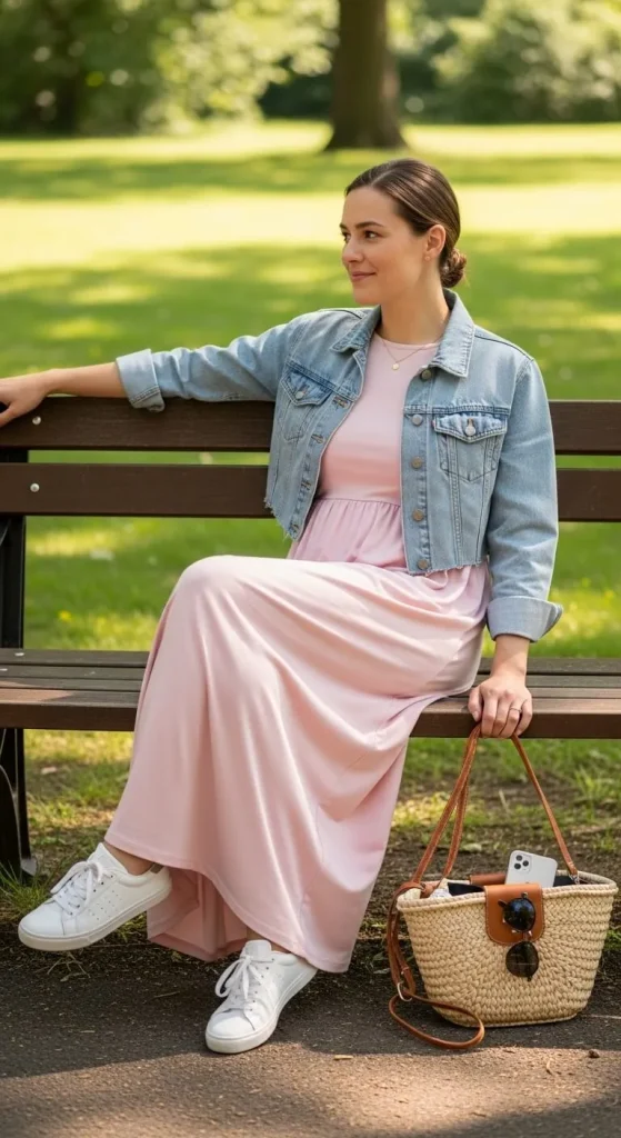 • Pair pastel maxi dresses with a light denim jacket or cropped cardigan.