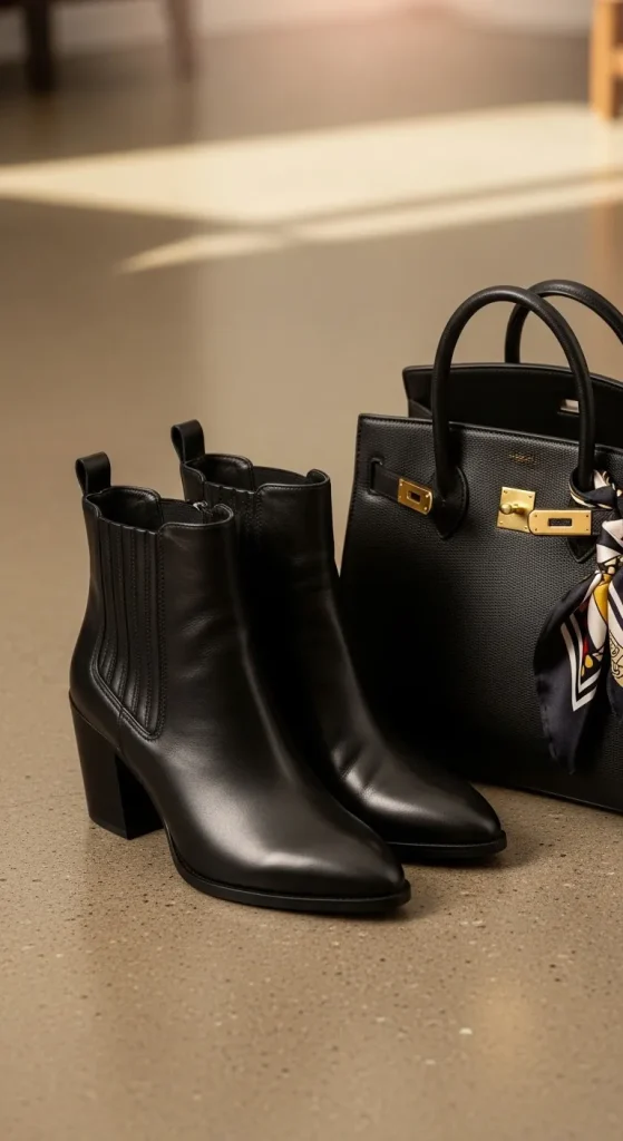 - Ankle Boots: A pair of heeled ankle boots can elevate the outfit without overpowering it. Stick to classic colors like black or brown.