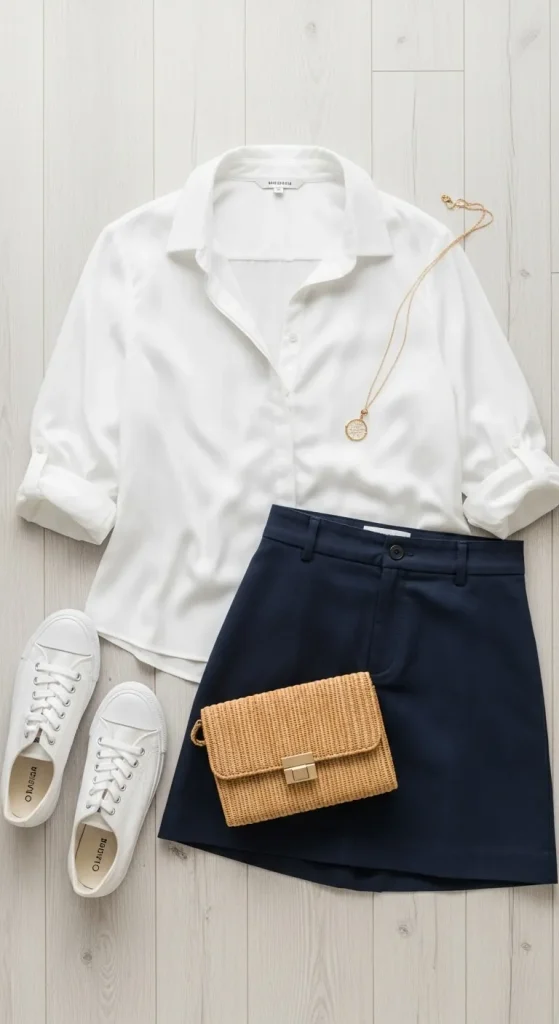 The key is to avoid high heels or boots that are too flashy—stick to sleek, clean styles that don’t steal the spotlight from the skirt.