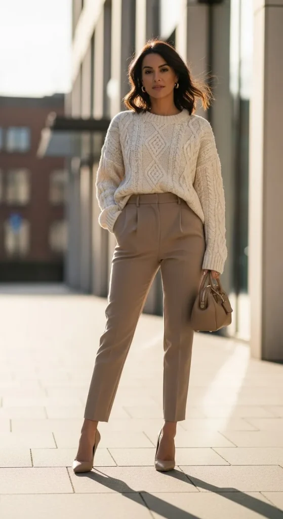 - Oversized sweater + fitted trousers