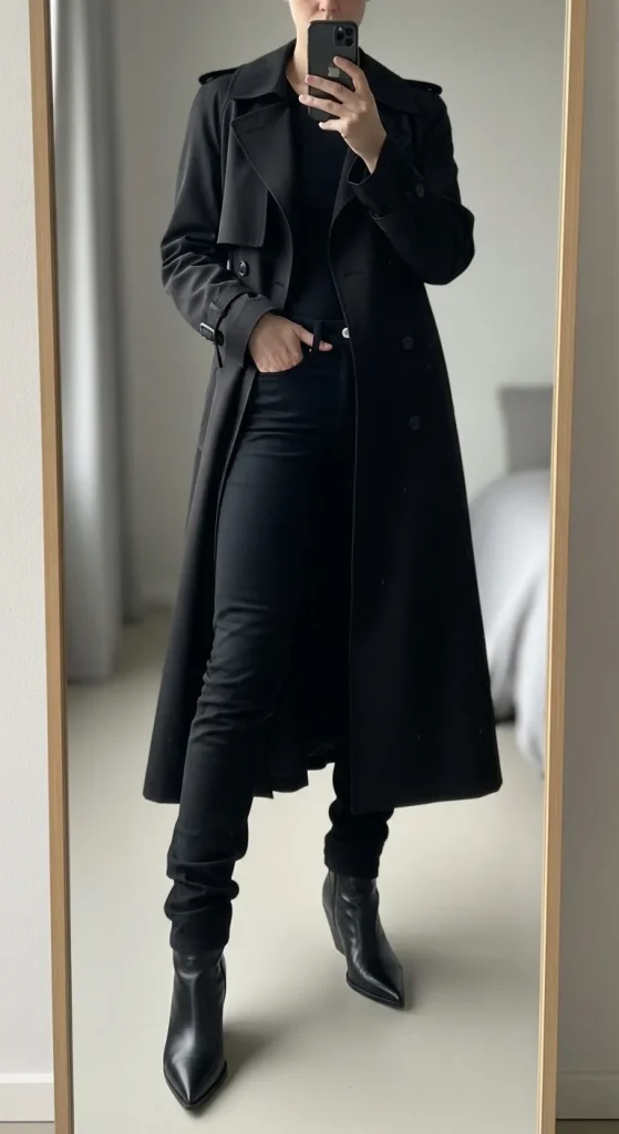 Layering adds both dimension and sophistication to an all-black outfit. It’s not just about staying warm; it’s about creating structure.