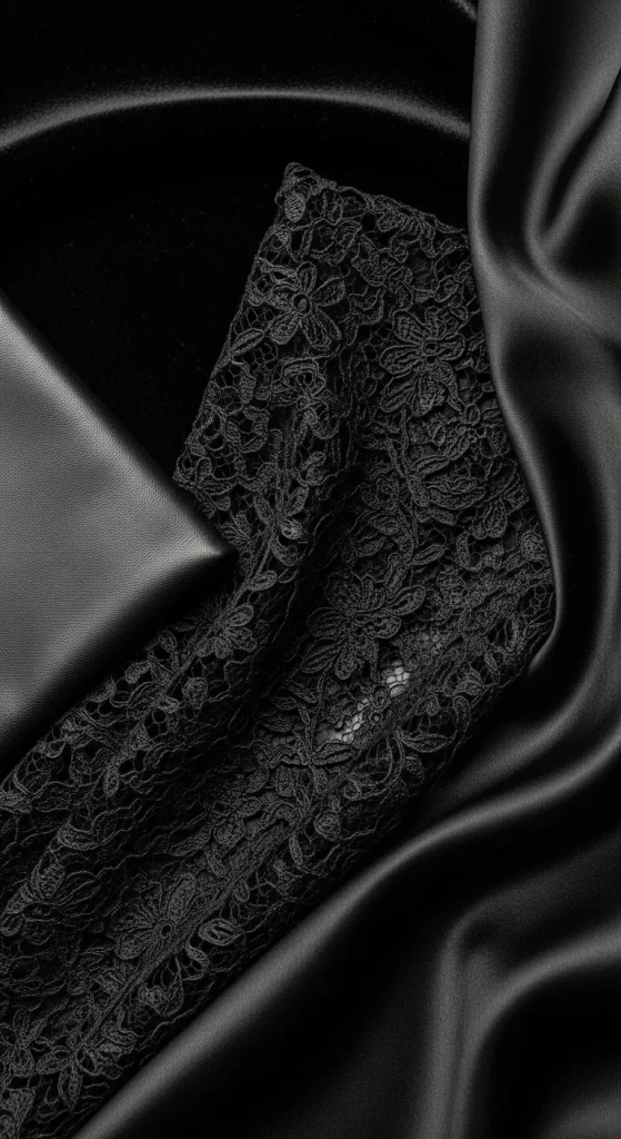Texture is your best friend when styling monochrome looks. Since all your pieces are black, the contrast must come from how fabrics feel and reflect light.