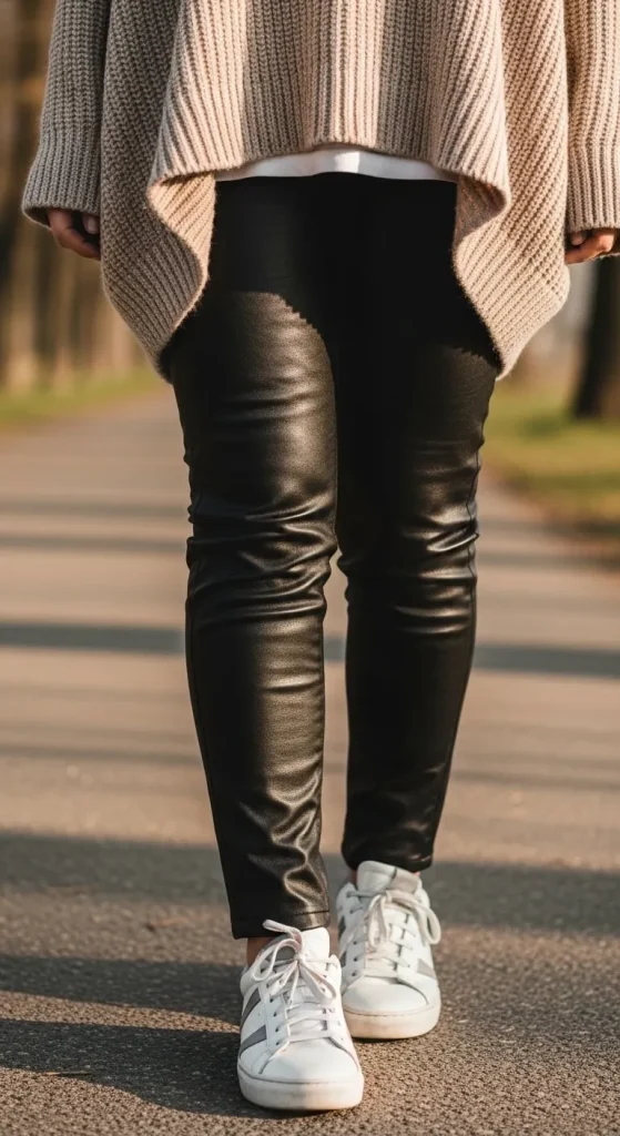 Leather pants might seem intimidating, but they can be surprisingly easy to wear casually. For an effortless, chic outfit, pair your leather pants with a simple top and sneakers. Think of a cozy oversized sweater, a casual tee, or a light hoodie. This is a great option for running errands or catching up with friends.