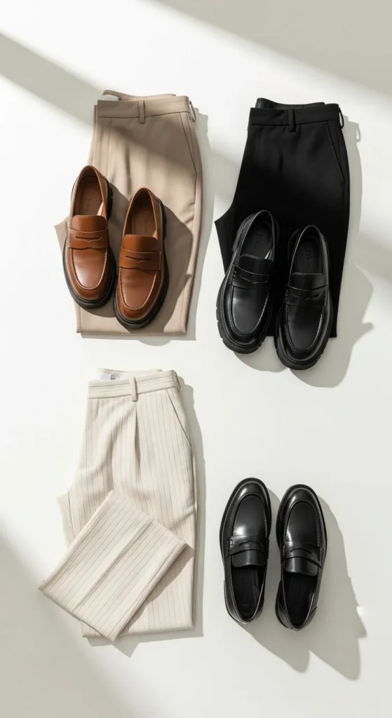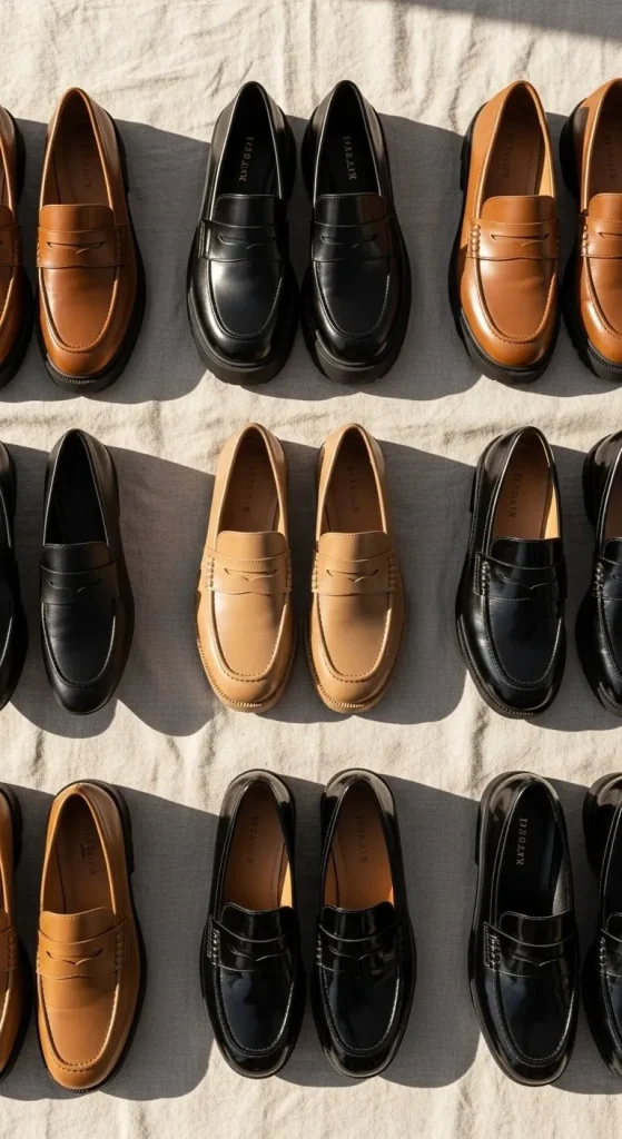Chunky loafers feel bold and modern, while classic leather styles give a clean, timeless look.
