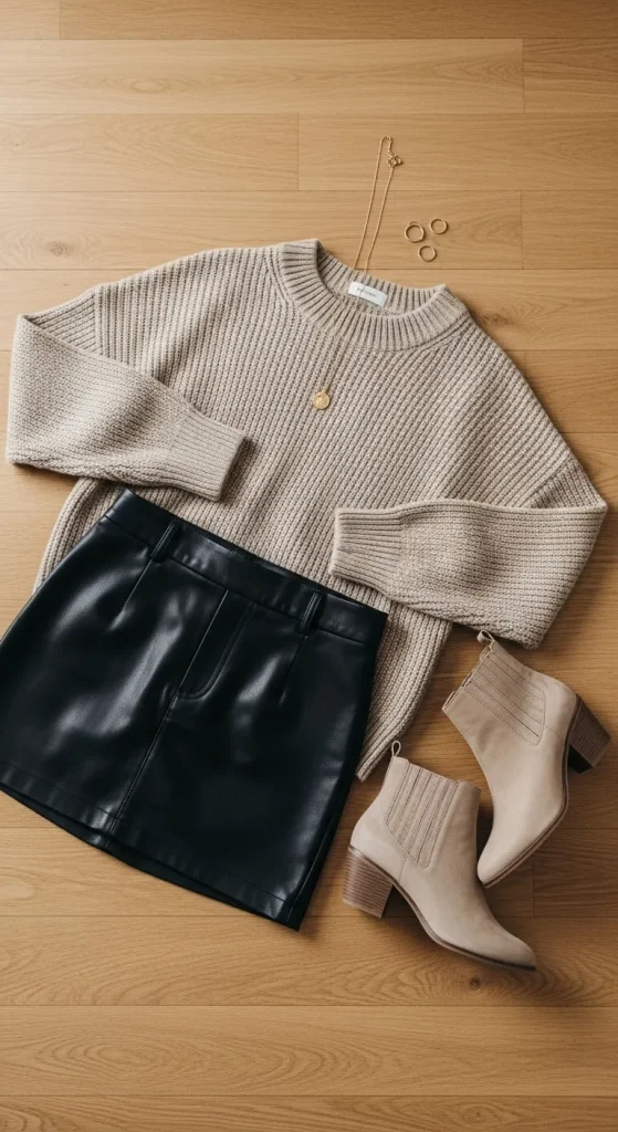 This mix feels trendy and cozy. The contrast between soft knits and sleek leather adds character. Add tights for warmth. You can also upgrade plain sweaters with rhinestone pins for shine.