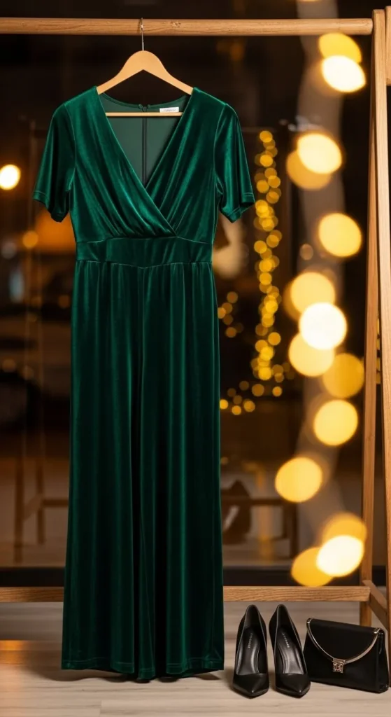 Velvet feels luxurious and warm—ideal for winter parties. A jumpsuit gives movement and structure without being too formal. Choose dark green or navy shades for elegance. Add gold hoop earrings and ankle boots for a comfy but chic finish. You can even reuse a plain jumpsuit by adding a jeweled belt for sparkle.