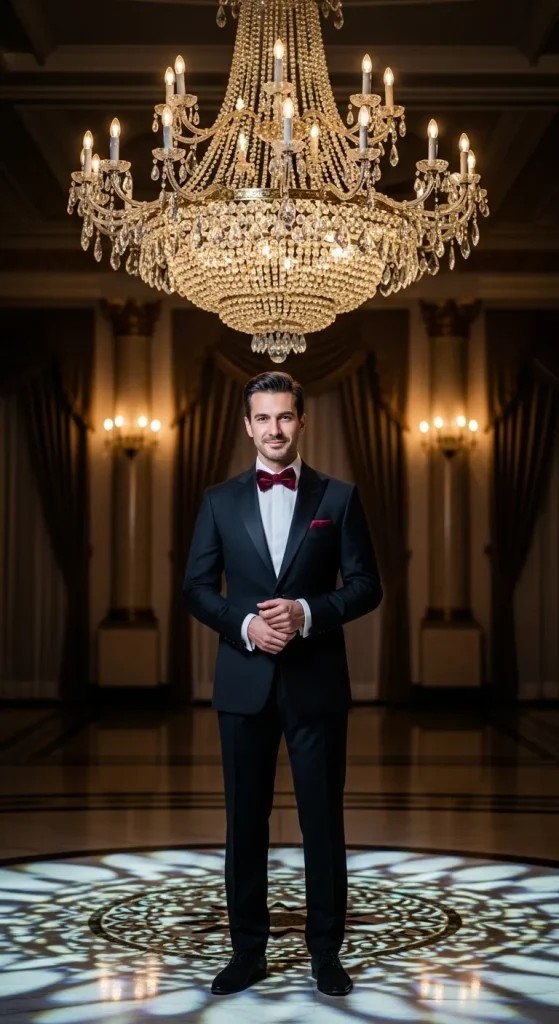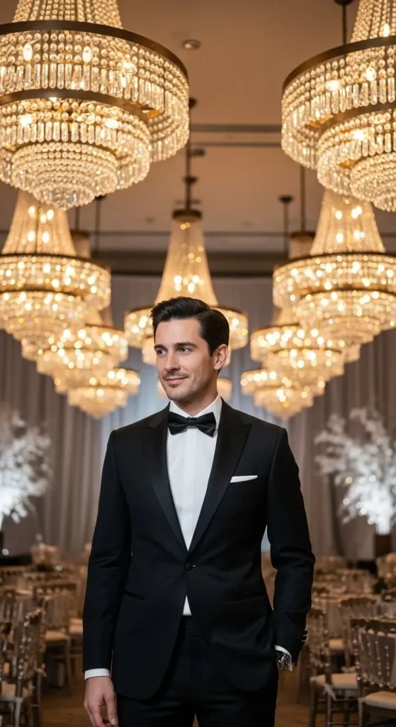 A classic black tuxedo never fails. Choose a slim-fit cut with polished shoes. Add a white pocket square for flair. If you’re renting, tailor the cuffs and trousers slightly for a perfect fit.