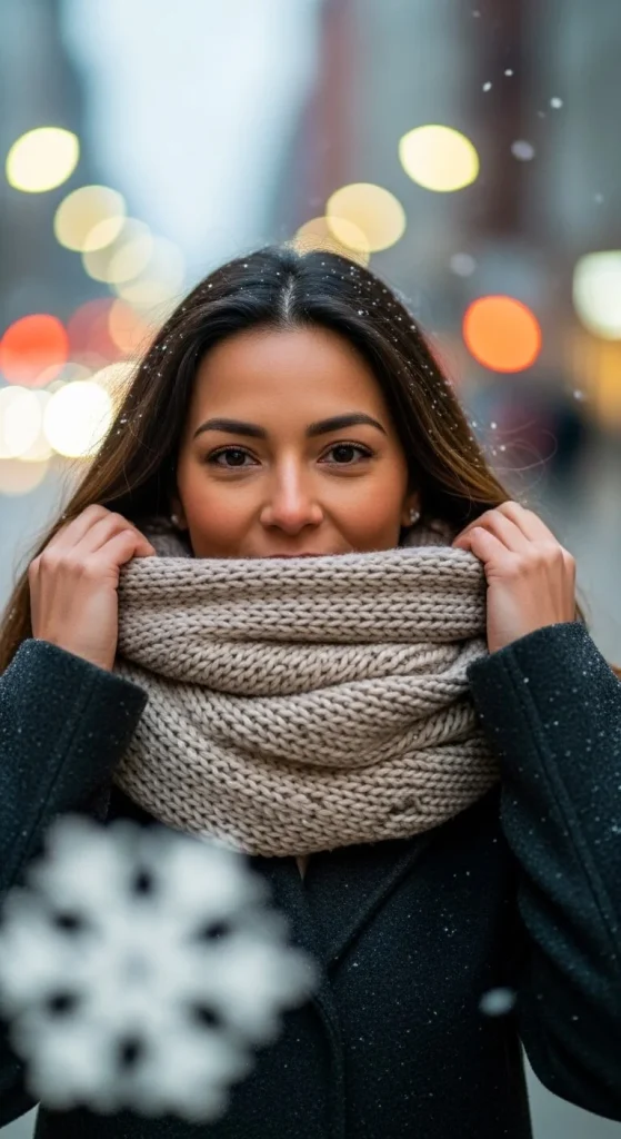 A chunky scarf can completely change your outfit. Wrap it over a coat or sweater for extra warmth. Try bold colors like red or green for holiday vibes. Want to make your own? Knit a thick scarf with budget yarn—it’s easier than you think! Pair it with neutral outfits to make the color pop.