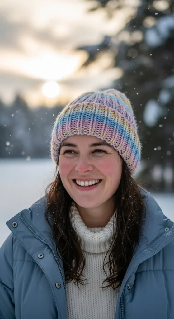 A knit beanie adds both warmth and charm. Choose soft pastels or classic neutrals. You can match it with your coat or go bold with color contrast. Beanies are budget-friendly and can easily be DIYed. Add a pom-pom for fun or personalize with small embroidery. Pair it with a long coat for that perfect winter Instagram photo moment.
