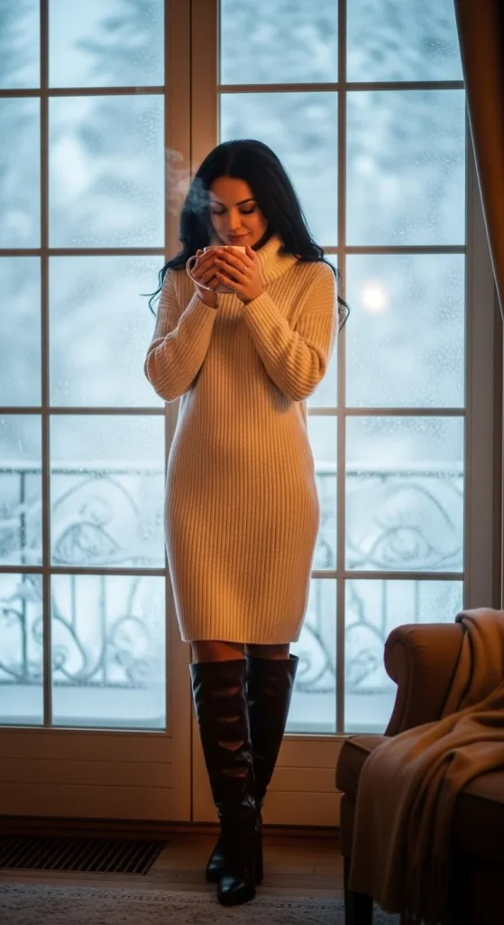 A turtleneck dress is perfect when you want something comfy but chic. It’s easy to dress up or down. Pair it with boots and a wool coat for a night out or sneakers and a denim jacket for daytime errands. To make it affordable, grab a basic one in neutral shades like beige or gray and layer with accessories. Add tights for warmth and a belt to shape your waist.